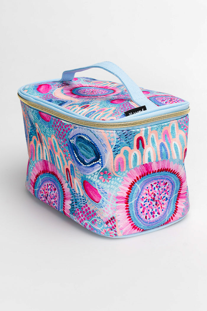 Our stunning, fan-favourite beauty bags are now available in fresh designs from the bright and beautiful Kenita-Lee McCartney. With durable canvas material, a water resistant lining and sturdy metal zippers, these bags are perfect for storage and travel for your beauty products, makeup, toiletries and more! Softly structured and cushioned to protect your valuables.